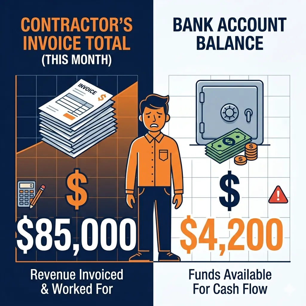 You just finished your best month ever — $85,000 in jobs billed. You check your bank account: $4,200. Where did it go? You've got $18,000 in materials on credit, a payroll due Friday, three invoices that are 30 days past due, and a truck payment coming out Monday. You're not broke because business is slow. You're broke because of how money moves through your business.