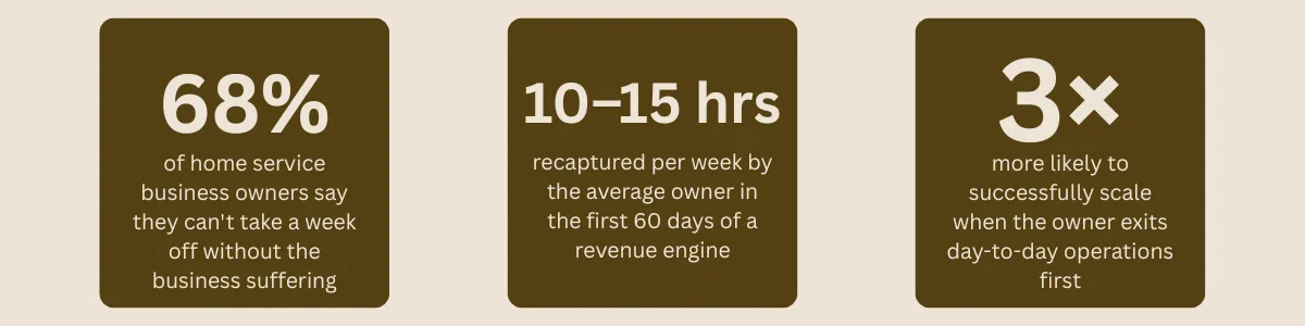 This is the Owner Trap. And it's not a character flaw — it's the natural result of being great at your trade and terrible at building systems. Most home service business owners are exceptional craftspeople who accidentally became full-time administrators, marketers, HR managers, and accountants. Nobody trained you for that. Nobody warned you it was coming.